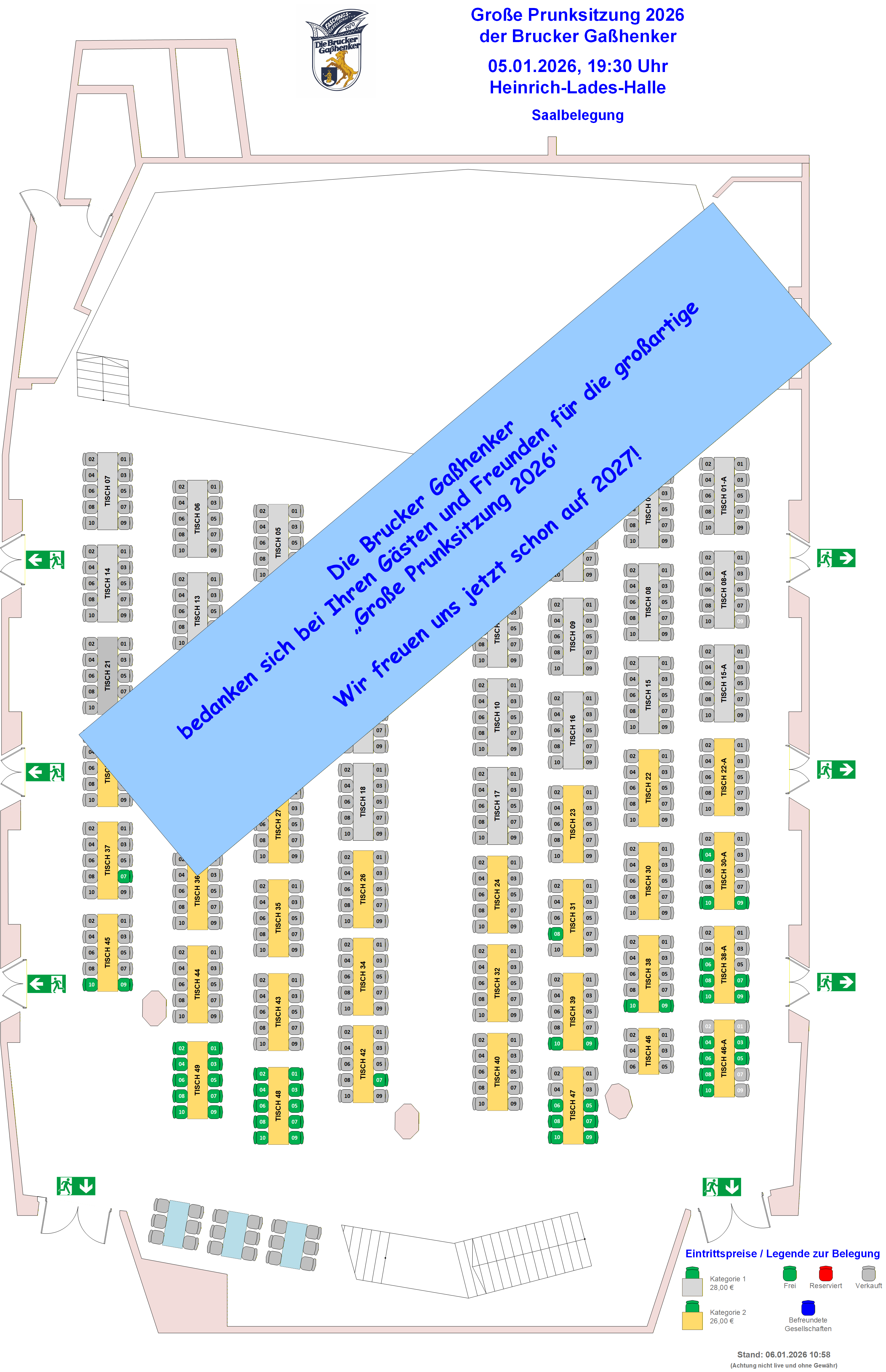 Der abgebildete Saalplan entspricht keiner Livedarstellung, daher können noch frei angezeigte Plätze bereits vergeben sein.
